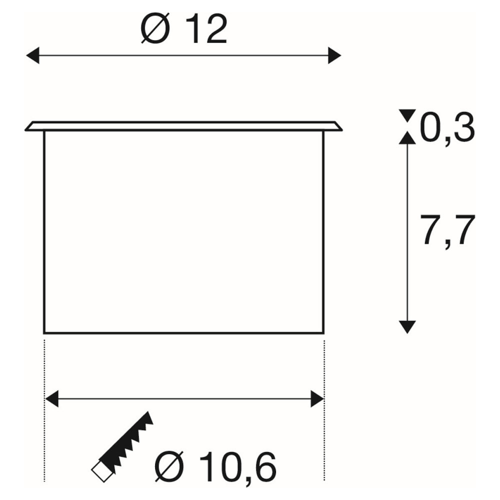 The floor recessed luminaire is designed for flush mounting and requires an installation opening with a diameter of 10.6 cm. Connection is made via an open cable end, intended for direct connection to mains voltage of 220-240V. Thanks to protection class 1 and IP protection ratings IP65 and IP67, the luminaire is reliably protected against dust and jet water. The mains frequency is 50/60 Hz, and the ambient temperature can vary between -20 and +35 °C, enabling safe operation under different conditions.