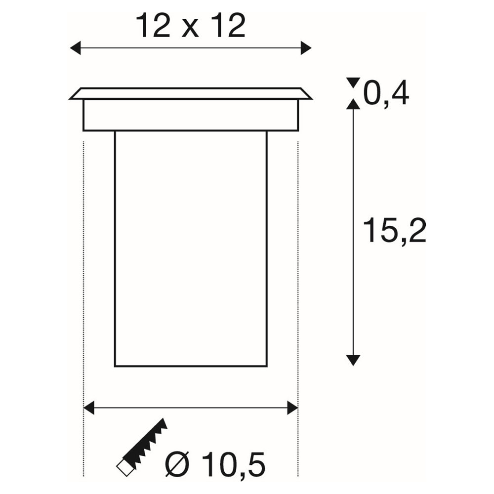 Thanks to the IP67 protection rating, the in-ground spotlight SOLASTO is protected against jetting water, dust, and temporary submersion. It is ideal for ground use and can withstand a load of up to 0.6 tons. The visible part of the spotlight measures 12x12x0.4cm, while the overall size is 12x12x15.6cm.