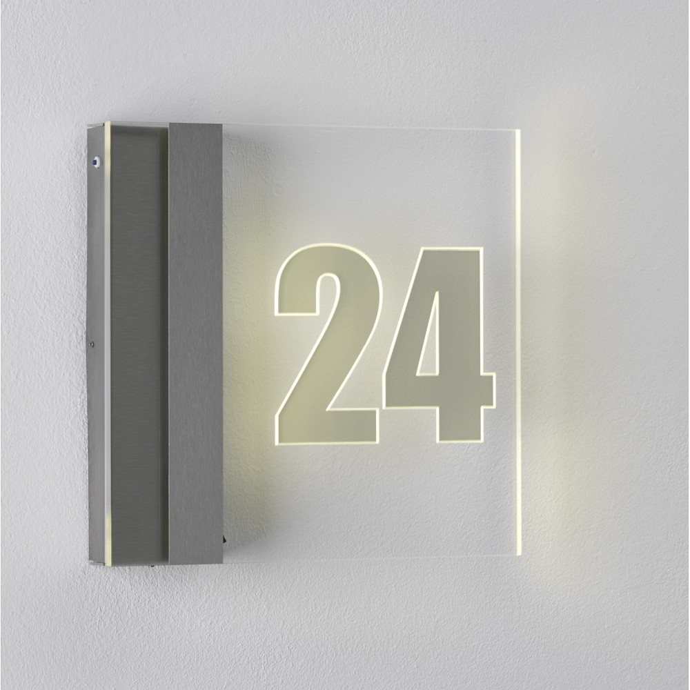 LED Hausnummernleuchte mit Dämmerungsschalter, IP44, 25 x 25cm, individuell gelasert, 1W 3000K