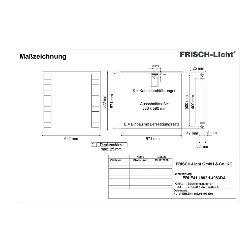 The LED recessed/grid light from Frisch-Licht is an energy-saving lighting solution for indoor spaces. With a power consumption of 37W and a light output of 4000lm, it provides bright and uniform illumination.