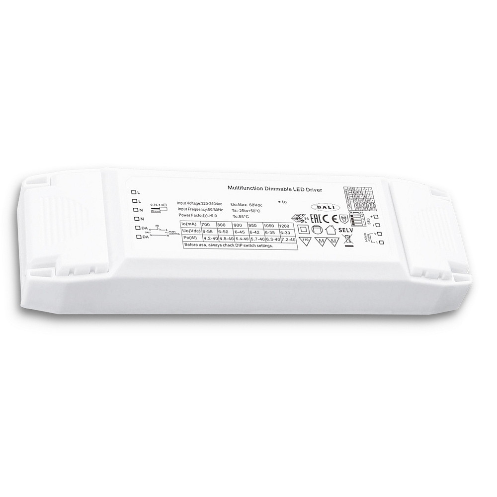 LED Konstantstrom Trafo 700/800/900/950/1050/1200mA, 40W, Push/1-10V/DALI dimmbar, weiß