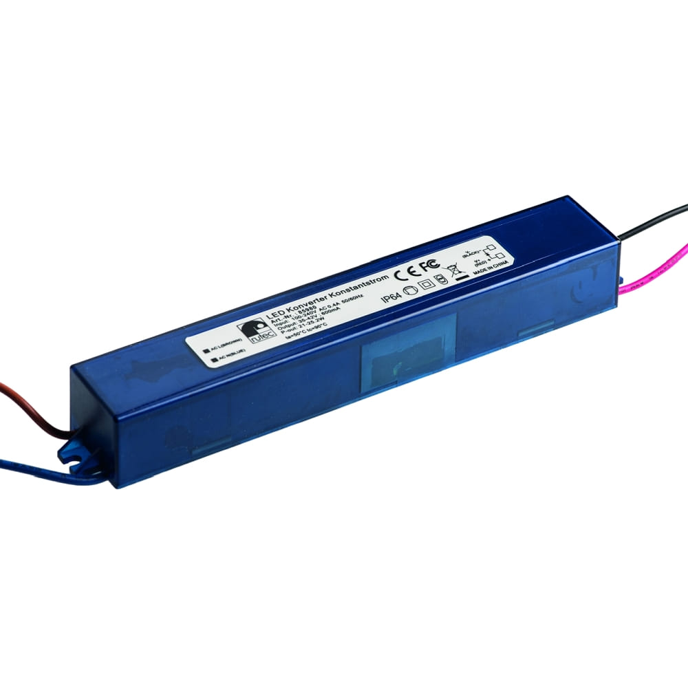 Dank seiner Schutzklasse 2 und der IP64 Schutzart ist der LED Konstantstrom-Konverter von Rutec Projekt vor Spritzwasser und Staub geschützt. Dadurch eignet er sich ideal für den Einsatz in verschiedenen Innenbereichen, wo Feuchtigkeit und Staub ein Problem darstellen könnten.
