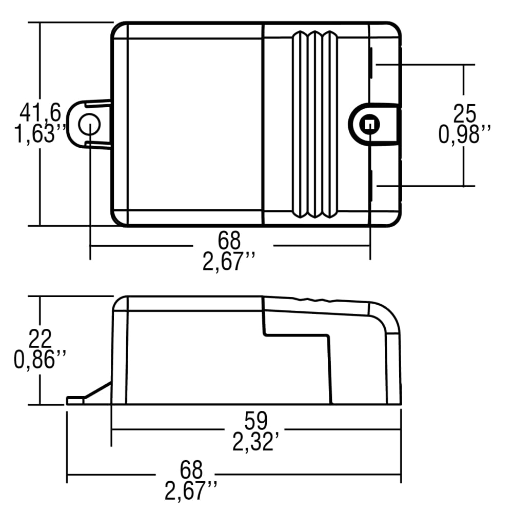 Dieser Konverter verfügt über einen Überlastungsschutz, einen Überspannungsschutz, einen Überhitzungsschutz und einen Kurzschlussschutz. Die Gehäusetemperatur des Konverters beträgt 80°C und er ist flickerfrei für eine angenehme Beleuchtung. Mit einem Schlitz für Schrauben kann der Treiber sicher befestigt werden und die Eingangs- und Ausgangsklemmen sind auf derselben Seite für eine einfache Verkabelung.