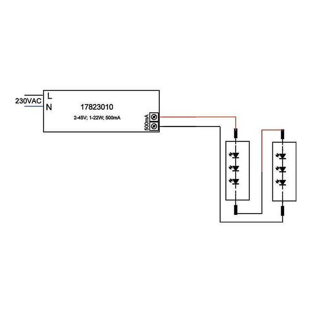 LED Konverter, IP20, 230V AC, sek. 500mA, 1- 22W, nicht dimmbar