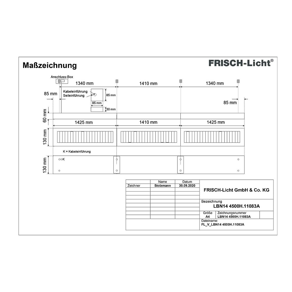 The LED Light Strip Pendant Grid Light from Frisch-Licht is a high-quality lighting solution for indoor spaces. With a beam angle of 60° and a luminous flux of 11000lm, it provides uniform and glare-free lighting. The fixture has a color temperature of 3000K and a color rendering index of 1B, creating a natural and pleasant light atmosphere.
