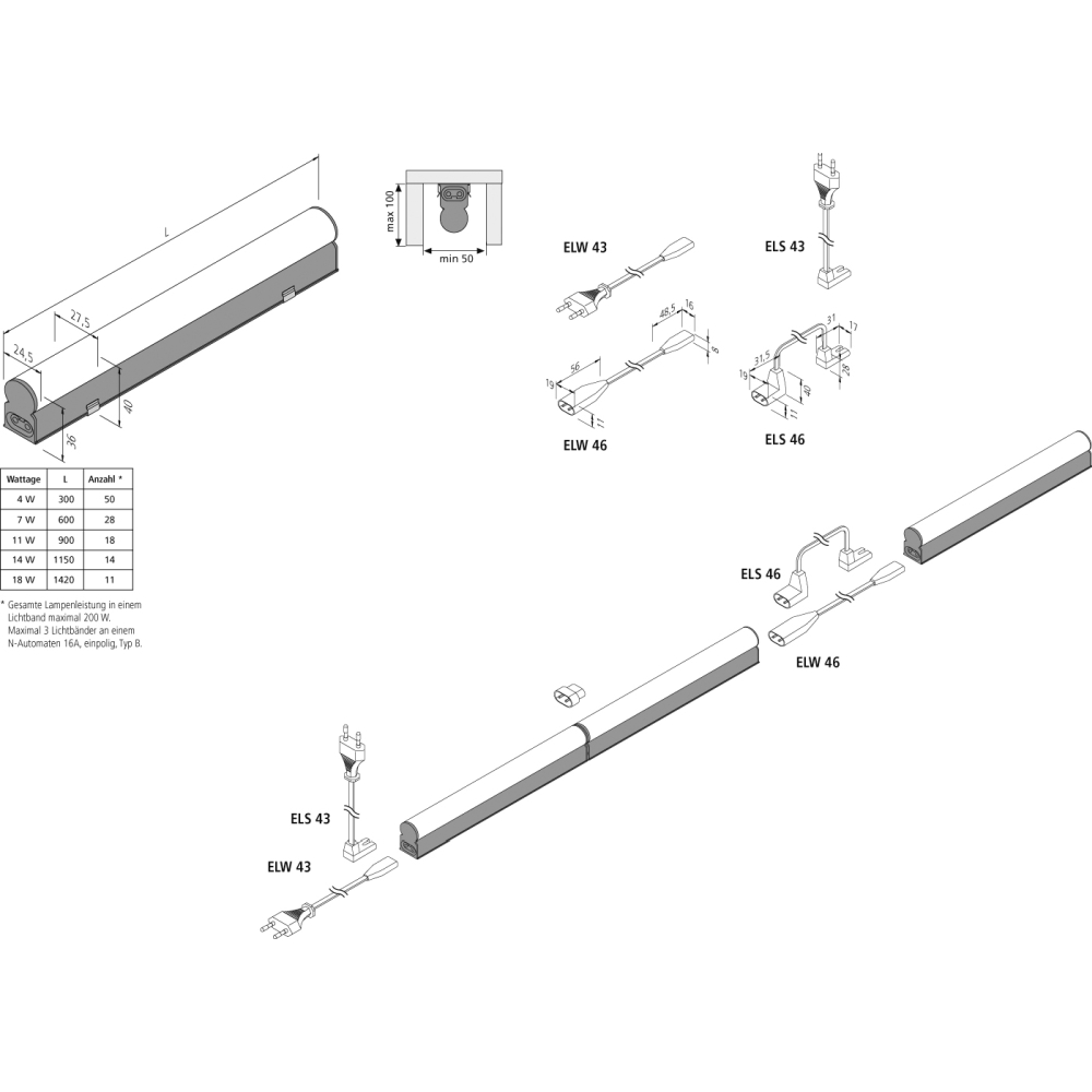 LED Linienleuchte LED EcoLite F, IP20, 230V, 30cm, 4W 3000K 360lm 170°