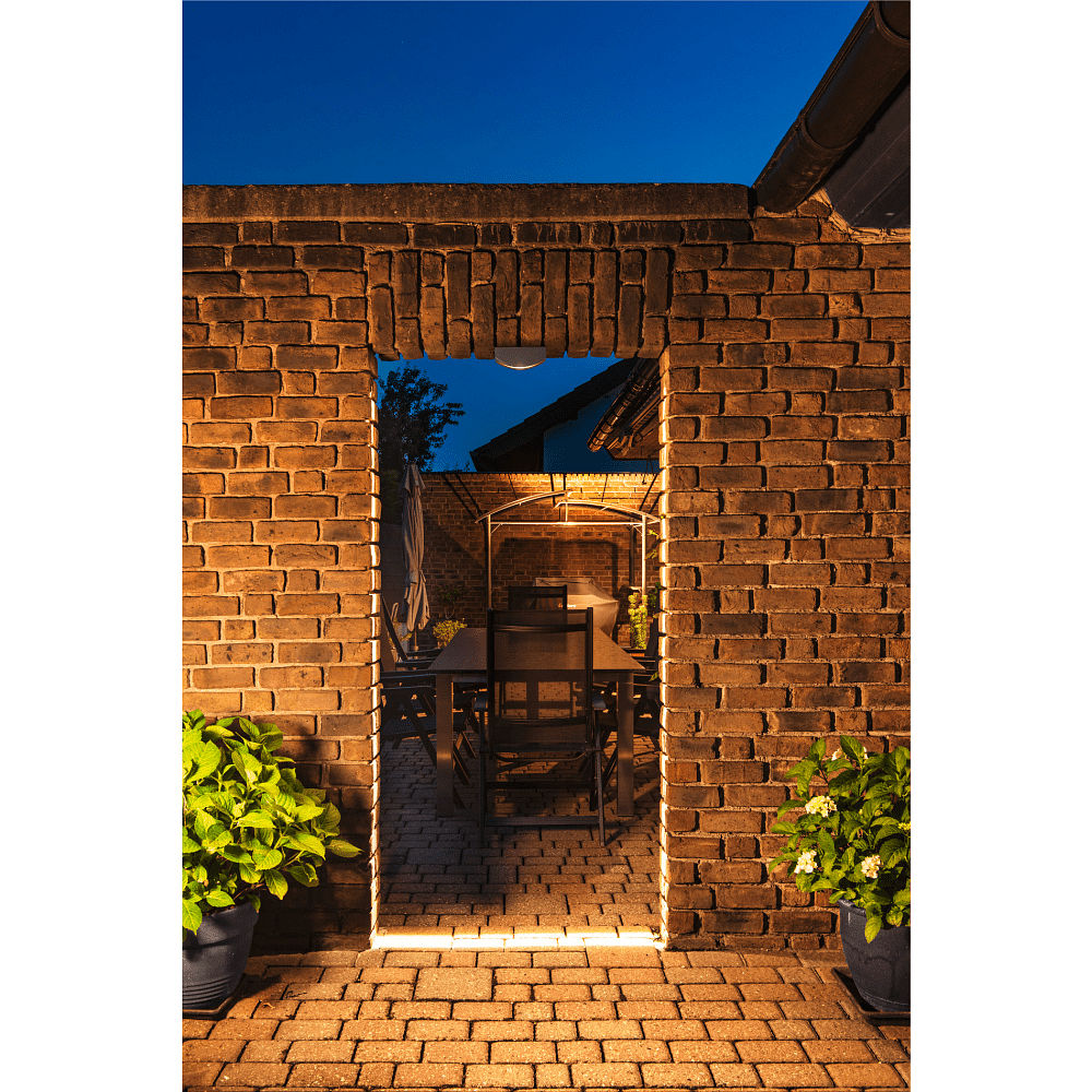 The LED outdoor light OUT-BEAM FRAME CW is a versatile wall and ceiling light that is ideal for outdoor use. With a color temperature of 3000K, it produces a pleasant warm white light with a luminous flux of 60lm. Thanks to the wide beam angle of 3° and the 180° emission to the left and right, it provides effective lighting.