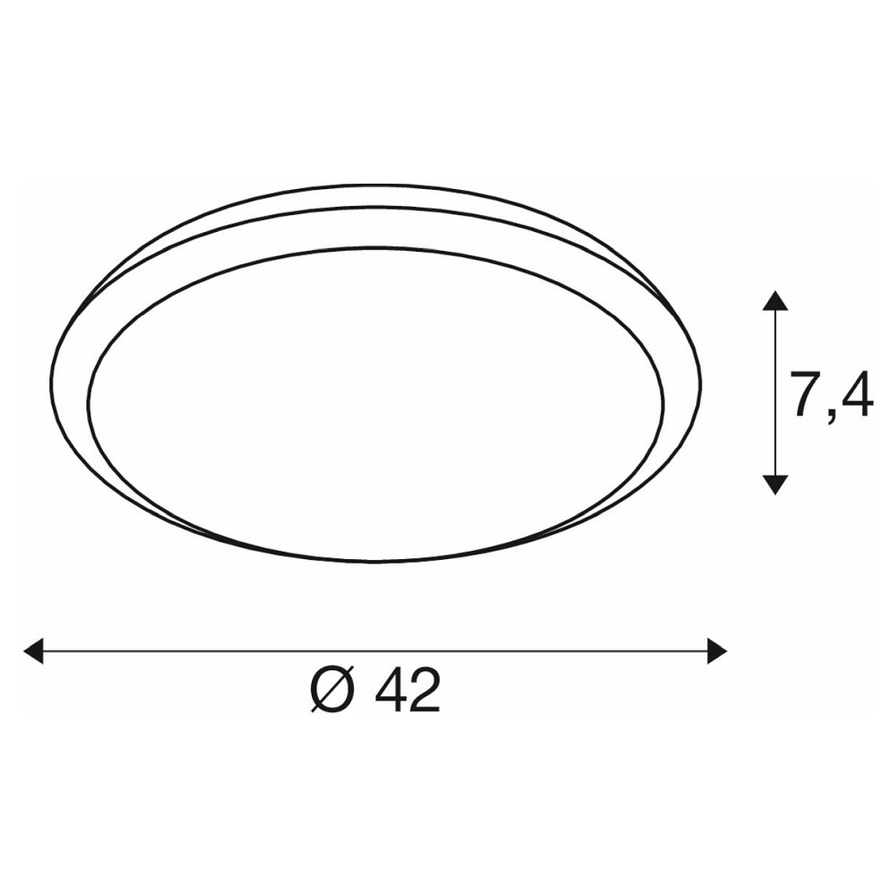 The LED outdoor light has a beam angle of 120° and an operating voltage of 220-240V~. With a size of Ø/H: 42/7.4 cm and a weight of 1.67kg, it is compact and easy to install. The housing is made of durable polycarbonate (PC) and has a mean lamp lifespan of 30000 hours.
