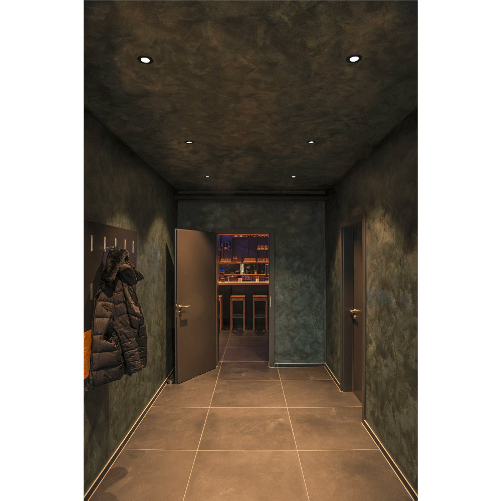 The PATTA-I ROUND DTW recessed downlight from SLV impresses with its innovative Dim-to-Warm technology, which allows seamless adjustment of the color temperature from 1800 to 3000 Kelvin. This enables you to create individual, warm lighting moods ranging from amber to warm white, ensuring a pleasant and cozy ambiance. With a luminous flux of 440 lumens and an energy consumption of only 7.3 watts, the light source is particularly efficient and durable, featuring an average lifespan of 30,000 hours.