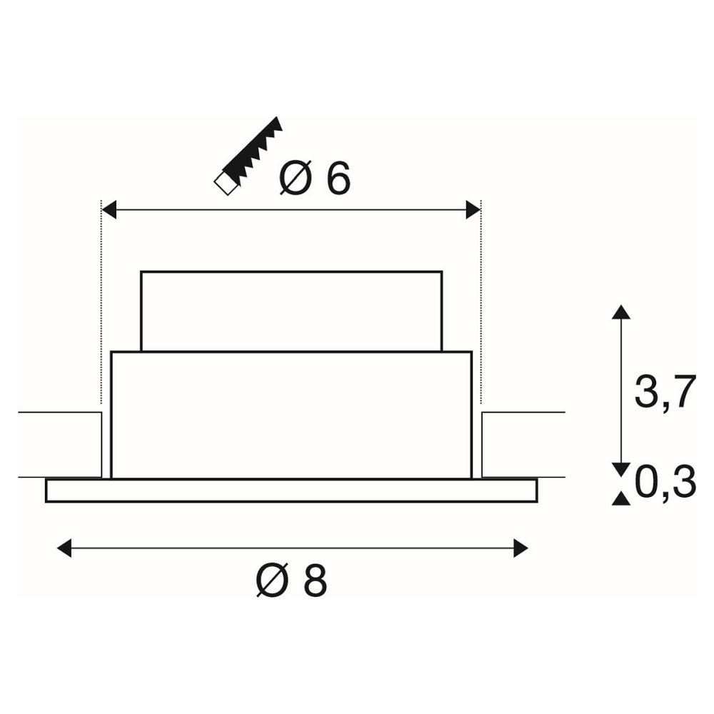 The downlight is equipped with a front protective glass and has an IP65 rating, protecting it against moisture and foreign objects. The built-in part is additionally protected with IP20, ensuring high safety and reliability. The recessed light features a slim, black design that blends harmoniously into many environments. The installation depth is 10 cm, with a cutout diameter of 6 cm, allowing for easy integration.
