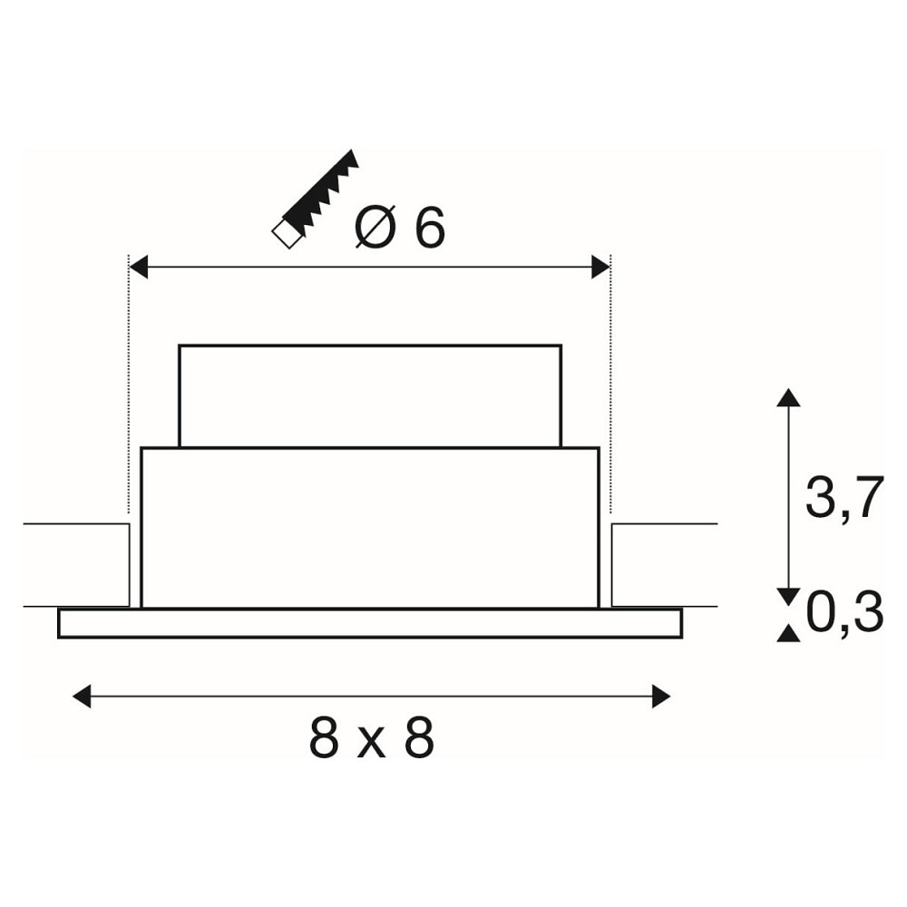 The luminaire is equipped with an IP65 protection rating, which protects it against moisture and foreign objects. The front protective glass ensures that the luminaire functions reliably even in demanding environments. The installed part of the luminaire is additionally protected with IP20, allowing for safe installation. The mounting opening has a diameter of 6 cm and the installation depth is 10 cm, enabling easy and space-saving mounting of the downlight.