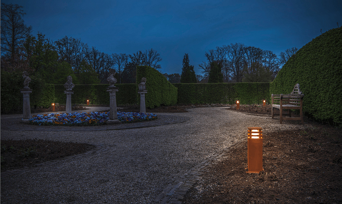 Durch die gerostete Oberfläche werden weitere Korrosionen der Leuchte verhindert - und einzigartige optische Effekte erzeugt.