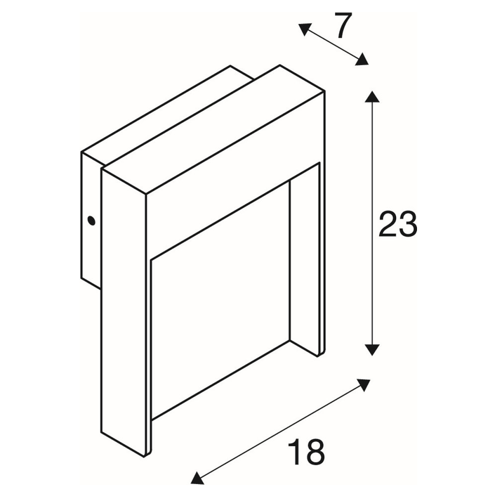 The dimensions of the light are 18 x 23 x 7 cm (W x H x D) and it weighs 2.045 kg. The operating voltage is between 100-277V~ and the power consumption is 13W. The light is easily mounted through surface mounting. The brand of the product is SLV and it belongs to energy efficiency class E.