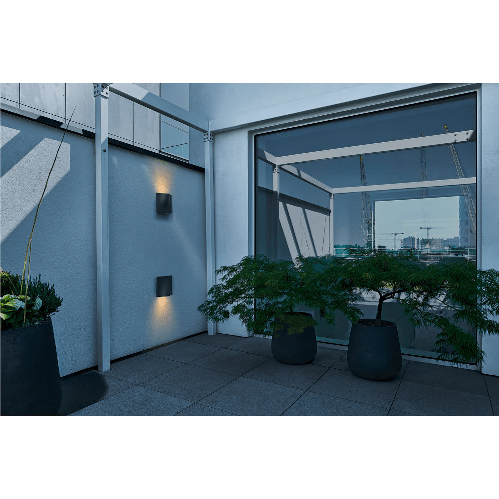 The design of the Wall Light VILUA II WL is modern and timeless. The housing is in an elegant anthracite color that easily fits into any environment. The high-quality construction ensures durability and weather resistance.