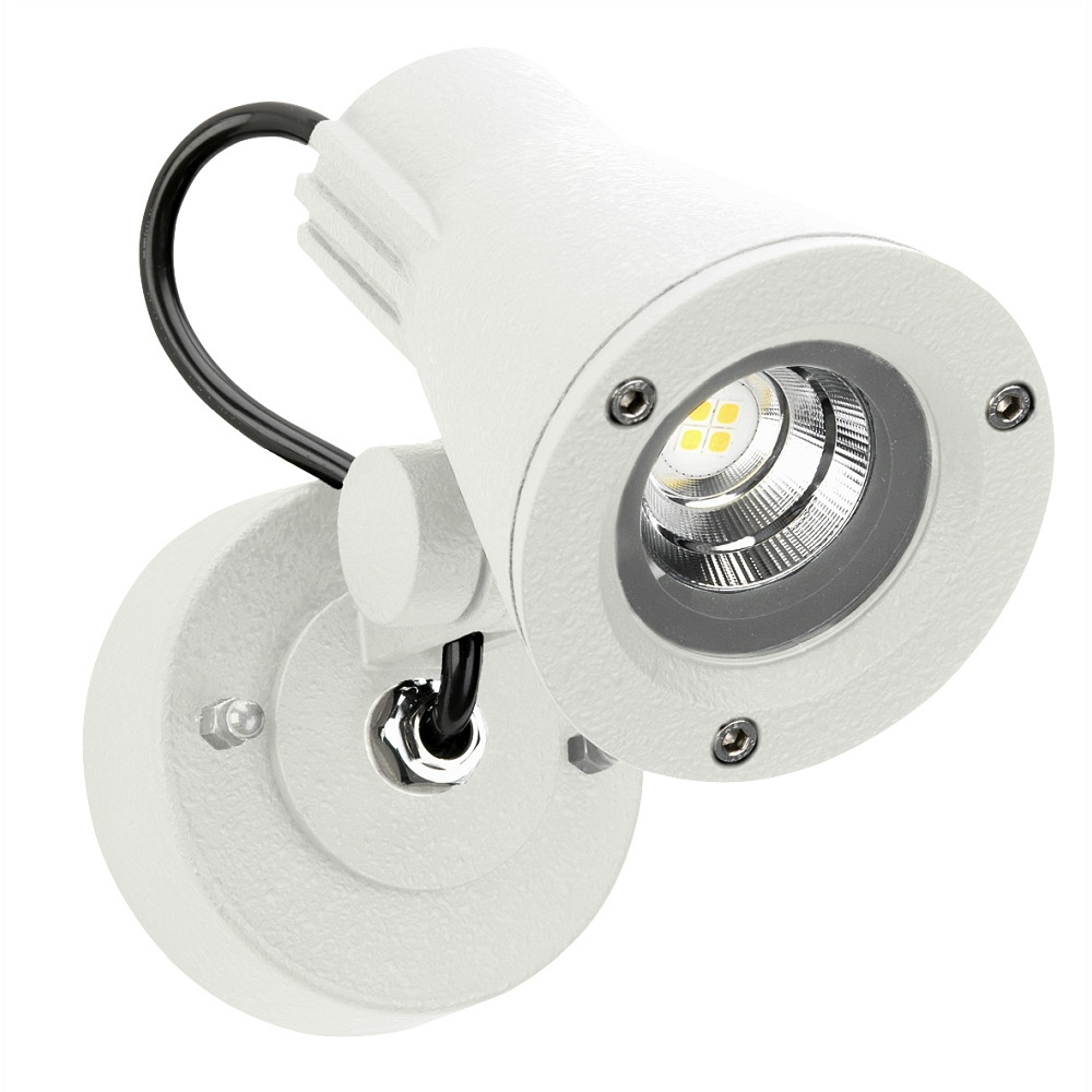 LED Outdoor Wall spot Type No. 2353, IP54, 230V AC/DC, 8W 3000K 800lm 30°, rotatable and swivleing, cable, white matt