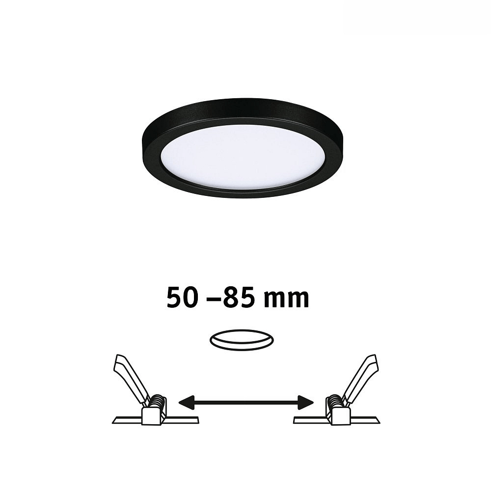 The LED Recessed Panel AREO VariFit ON-OFF by Paulmann is an energy-efficient lighting solution for ceilings. With an energy consumption of only 8 kWh/1,000 h and a power consumption of 8W, it is equivalent to a conventional incandescent bulb with a power of 63W. The color temperature of 3000K provides a pleasant light atmosphere, while the color rendering index of >80Ra ensures natural colors.