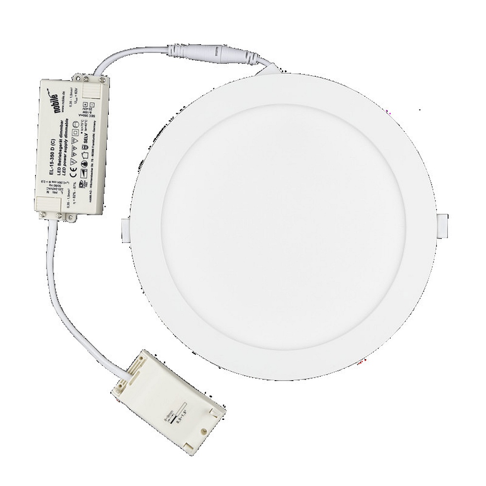 The ceiling light from nobilé features a dimming function and comes with a control gear. It is perfect for recessed installation in ceilings and has a protection class of 2. The material of the light is made of plastic and steel, while the light color is warm white. The IP protection rating is IP20, which means the light is protected against dust.