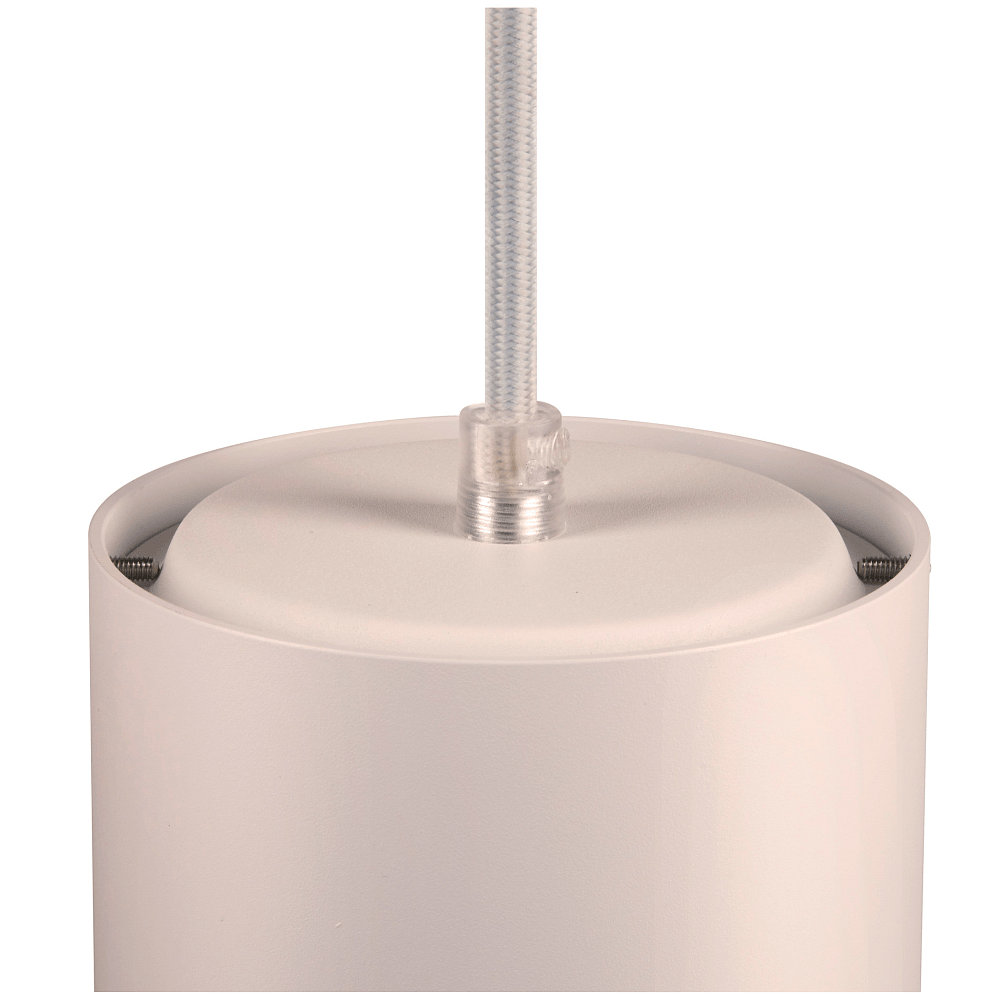 The pendant light has a size of Ø/ L/ W/ H: 12/ 25.8/ 12/ 12 cm and a rosette size of Ø/ H: 10.3/ 2.9 cm. It is made of high-quality aluminum and polycarbonate (PC). The pendant length can be shortened to up to 250cm to adjust it to your room height. The simple design in black or white harmoniously blends into any environment.