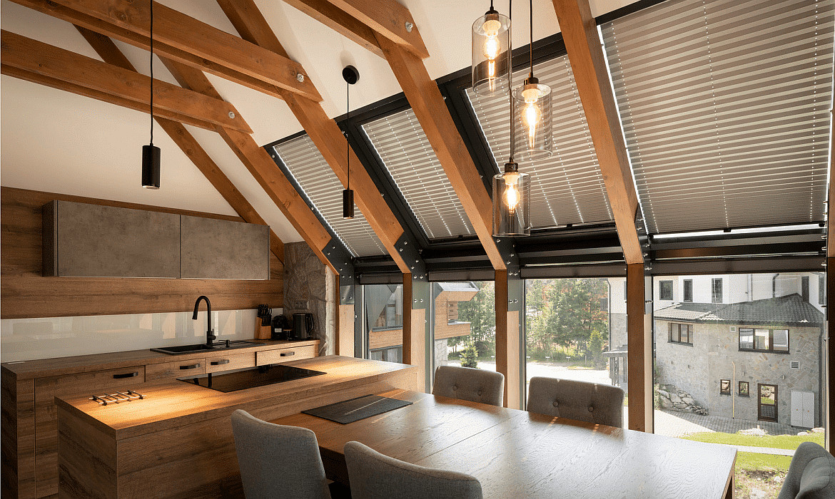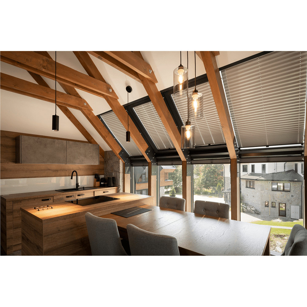 The pendant light includes the light bulb, which generates a luminous flux of 985lm. The material is made of high-quality aluminum and plastic, providing a modern look and robust construction.