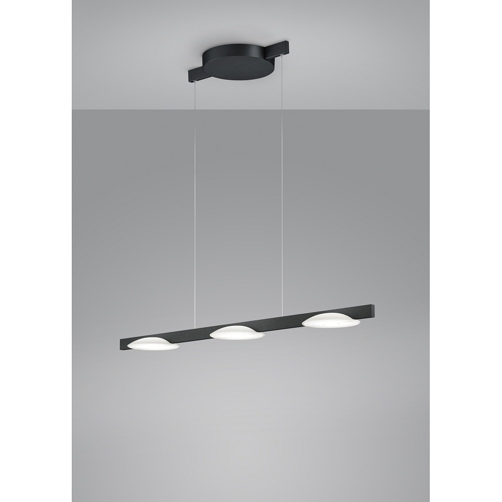 LED Pendant luminaire POLE LED, 3 flames, IP20, black matt anodised