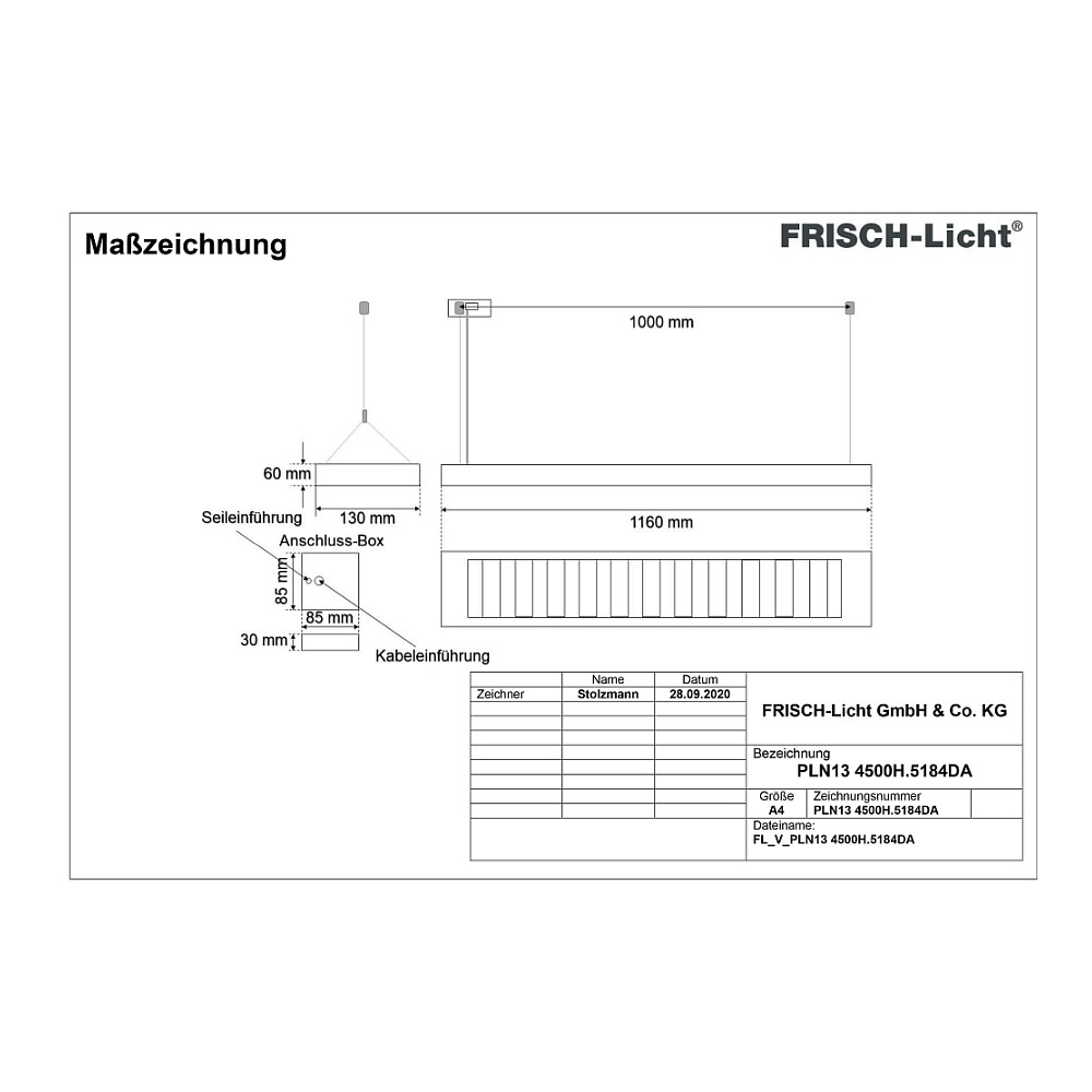 Die LED Pendel-Rasterleuchte von Frisch-Licht ist eine moderne und energiesparende Beleuchtungslösung für den Innenbereich. Mit einem Lichtstrom von 5100lm und einer Leistungsaufnahme von 39W sorgt sie für eine helle und angenehme Beleuchtung in Ihrem Raum. Dank der Direkt- und Indirektlichtverteilung wird eine gleichmäßige Ausleuchtung erzielt.