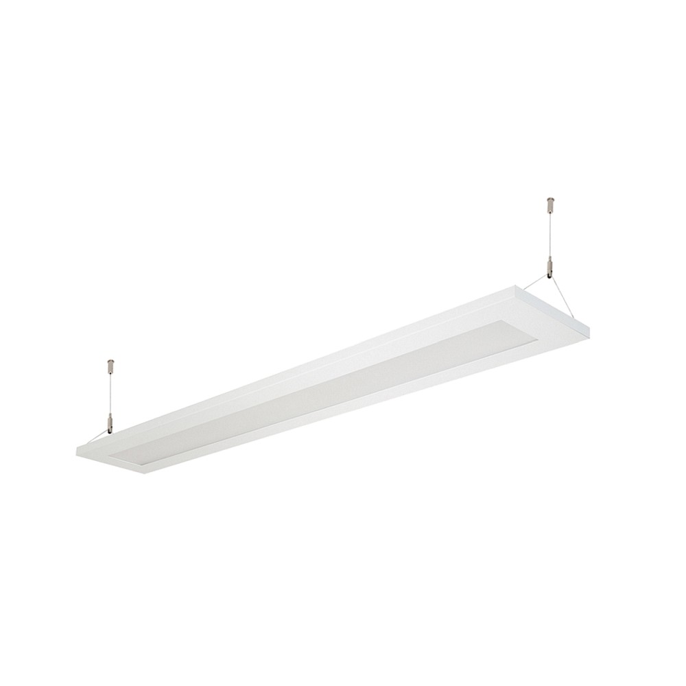 Die Pendelleuchte verfügt über eine UGR <19 Entblendung und eignet sich daher auch für Bildschirmarbeitsplätze. Durch die Möglichkeit der Durchverdrahtung können mehrere Leuchten hintereinander installiert werden. Die Montage erfolgt einfach durch eine Aufbau Montage.