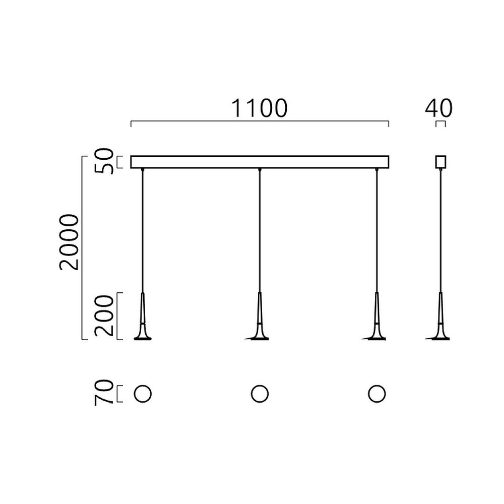 LED Pendelleuchte FLUTE, IP20, 3-flammig, 19W 2800K 1320lm, CRi >90, dimmbar, ohne Glasschirm, chrom