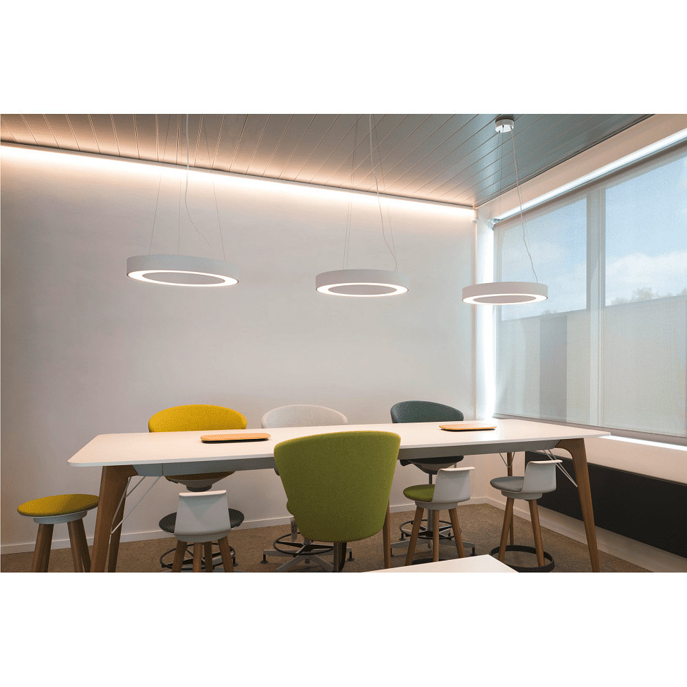Die LED Pendelleuchte MEDO RING 60 bietet eine symmetrisch-weiche Lichtabgabe mit guter Farbwiedergabe. Dadurch wird eine angenehme Beleuchtung erzeugt, die Räume optimal ausleuchtet und eine harmonische Atmosphäre schafft.