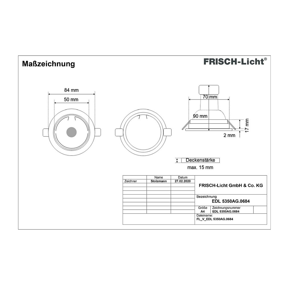 The downlight from Frisch-Licht is designed for ambient temperatures from -20 to +45 degrees Celsius and corresponds to protection class 2, providing additional safety. The combination of durable materials, easy maintenance through replaceable bulbs, and precise light adjustment makes this recessed luminaire a versatile solution for targeted lighting. Whether as a spotlight, accent, or object light – this downlight convinces with functionality and appealing design.