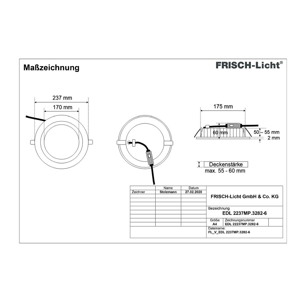 The LED recessed downlight from Frisch-Licht offers a flexible lighting solution with three selectable color temperatures: 3000K (warm white), 4000K (neutral white), and 5500K (cool white). With a power of 30 watts, it produces a luminous flux of 3200 lumens, providing bright and pleasant illumination. The LED lamp is non-replaceable but features an especially long lifespan of up to 30,000 hours, making it low-maintenance and durable. The direct light distribution and 75° beam angle make this downlight ideal for targeted lighting.