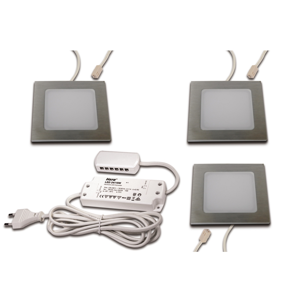 The 3-piece set LED furniture recessed light FAQ 58 is the ideal solution for illuminating furniture. The square lights have a stainless steel color and opal light distribution. With a installation depth of only 1.2cm and an installation opening of 5.8cm in diameter, they fit perfectly into your furniture.