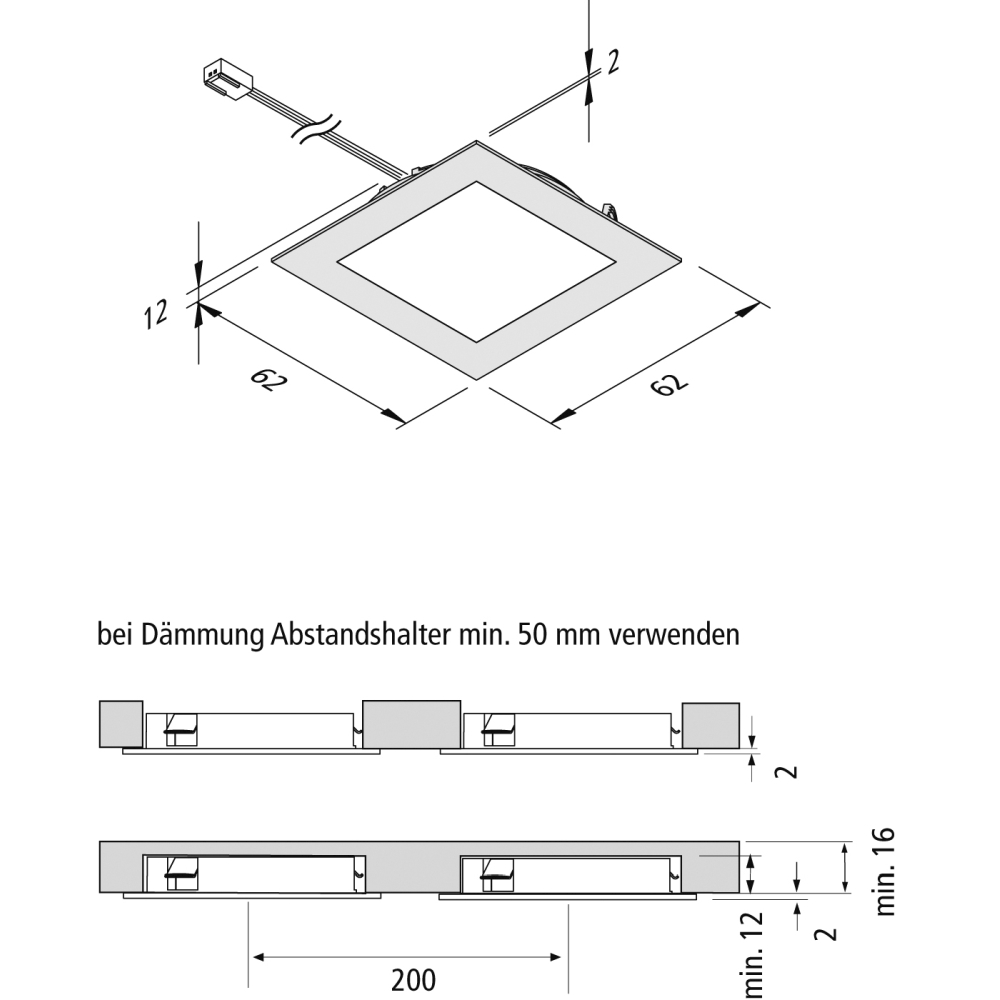 Installationsåbning min.-Ø: 5,5 cm