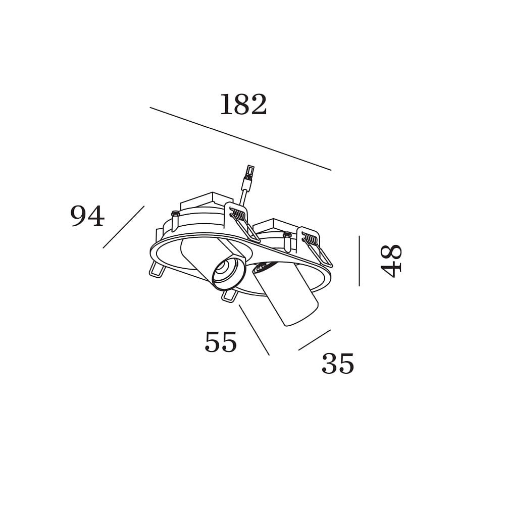 The separately swiveling and almost fully rotatable heads allow for optimal alignment of the light cones. The gimbal swiveling heads provide targeted illumination and offer a medium-wide light distribution.
