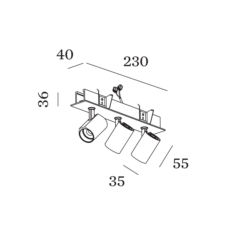 The recessed spotlight has a size of 23 x 4 x 8 cm, with the light head having a diameter of 3.4 cm and the rosette measuring 23 x 4 x 3 cm. With a installation depth of 60 cm and an installation opening of 22.1 x 3.2 cm, the CENO 3.0 fits easily into various ceiling structures. The installation is simple and straightforward through recessed mounting.