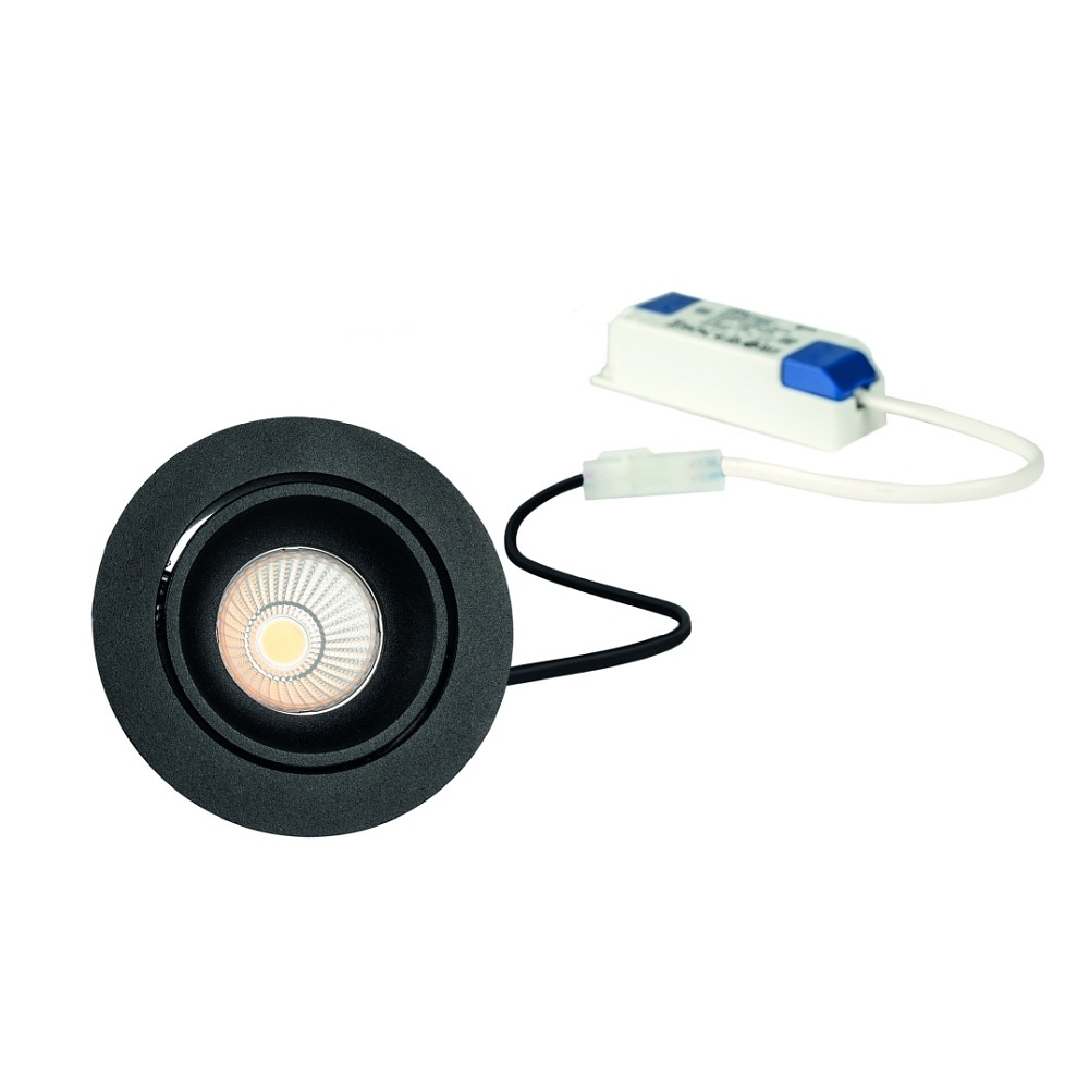 LED Recessed spot GAIL set of 1, round, 6W, 3000K, IP40, swivelling, On-Off, Plug&play, black