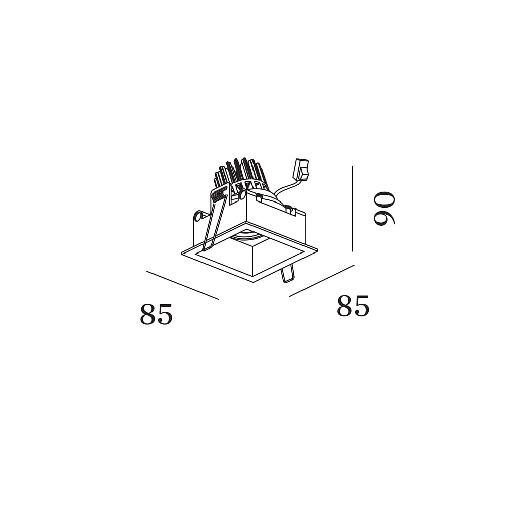 With a size of 8.5 x 8.5 x 9 cm and a weight of only 0.26 kg, the Recessed Spotlight PLANO 1.0 can be easily integrated into your ceiling. The installation depth is 9.5 cm, the installation opening has a rectangular shape with a length of 7.8 cm and a width of 7.4 cm.