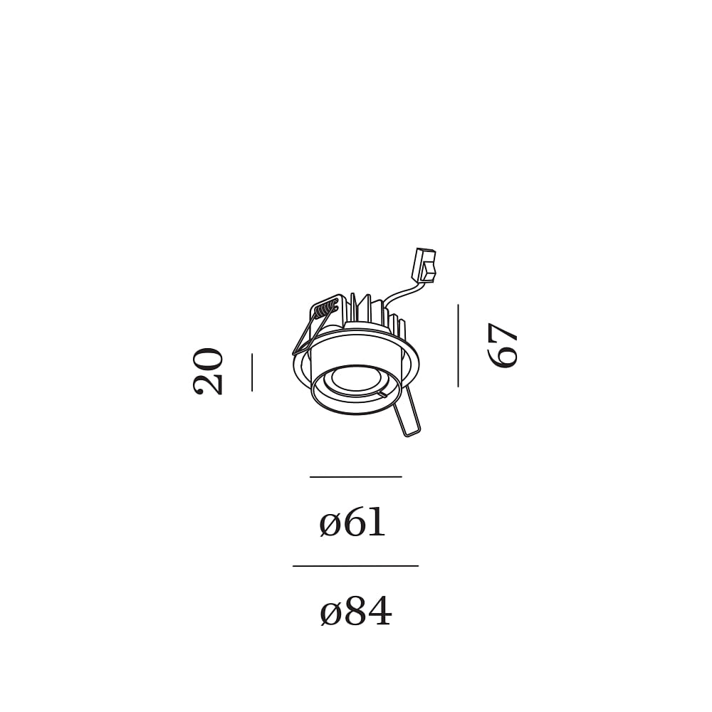 The LED recessed spotlight RINI SNEAK has an installation depth of 4.6cm and a circular installation opening Ø of 7.9cm. The protrusion is 2.2cm and the size of the spotlight is Ø/H: 8.4/6.5 cm. The inner ring has a diameter of 6/4.3cm and is made of high-quality aluminum.