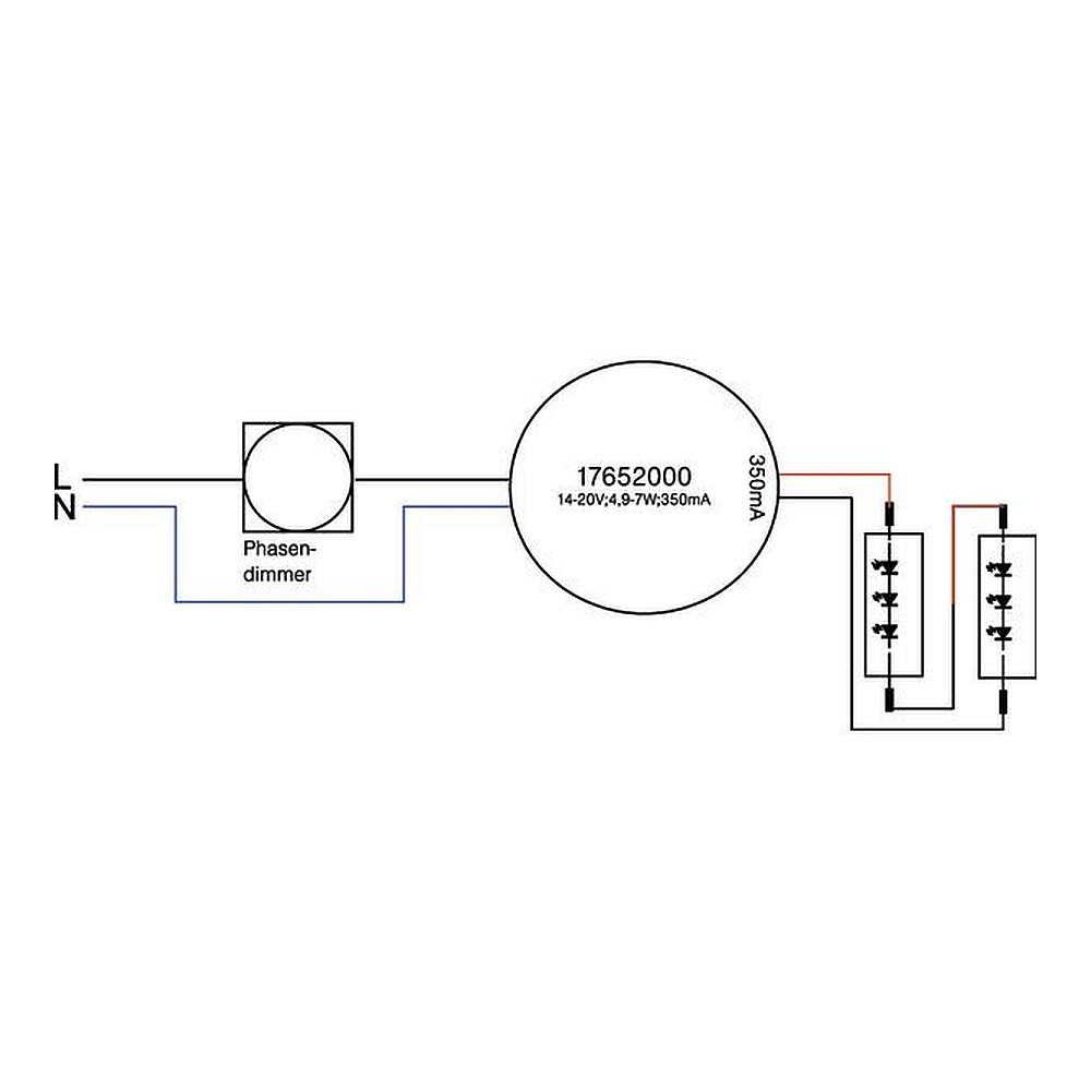LED Rundkonverter, IP20, 230V AC, sek. 350mA, 4.9-7W, dimmbar mit Phasenabschnitt