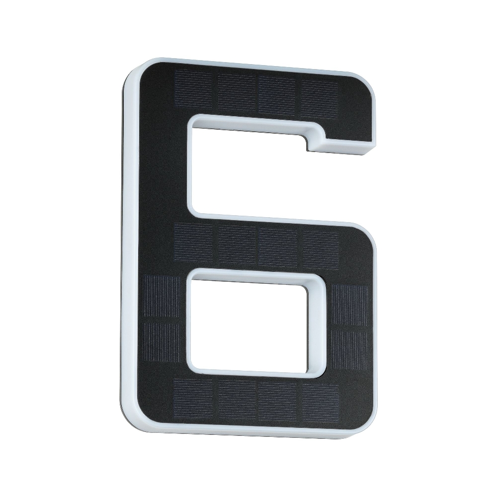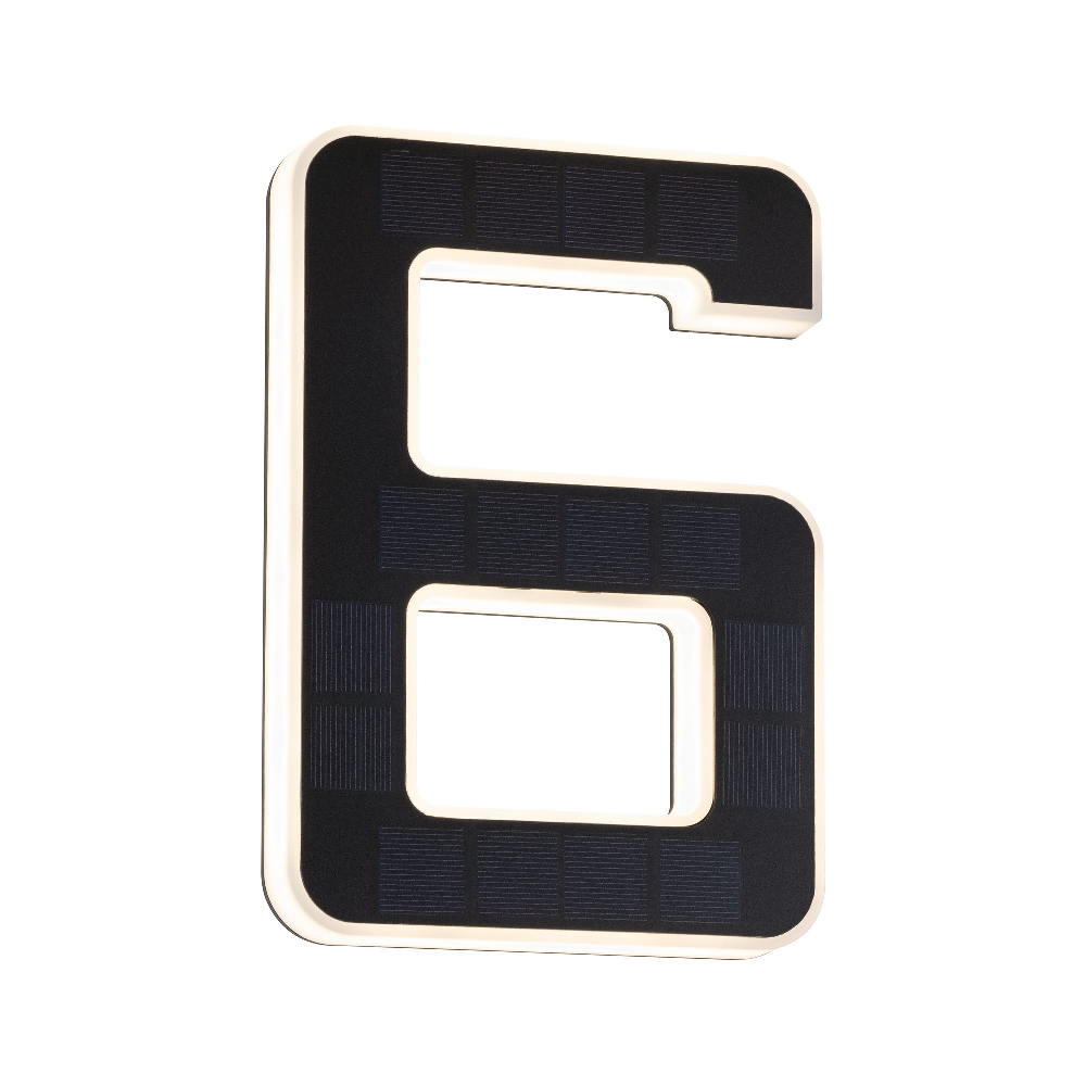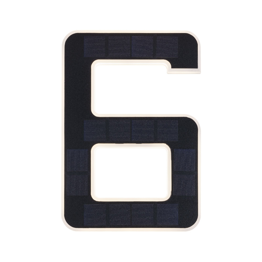 LED Solar-Hausnummer, IP44, indirekt, 3000K, 20lm, Akku wechselbar, schwarz, Ziffer 6