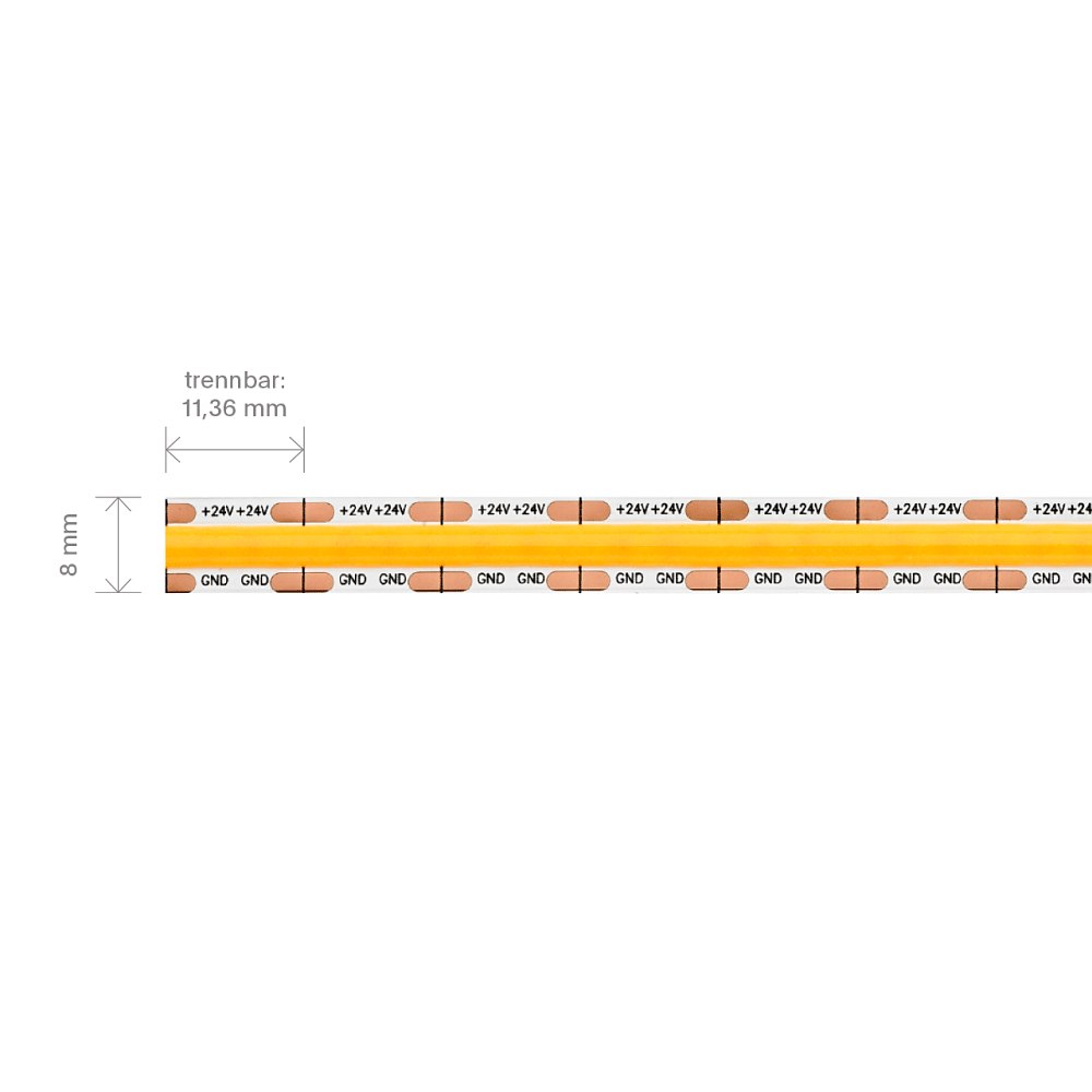 Thanks to the energy efficiency class G and a power consumption of 50W per meter, the LED Strip COB MINI CUT is particularly energy efficient. It is also dimmable, allowing you to adjust the brightness as needed. The energy consumption is 50kWh/1,000 hours.