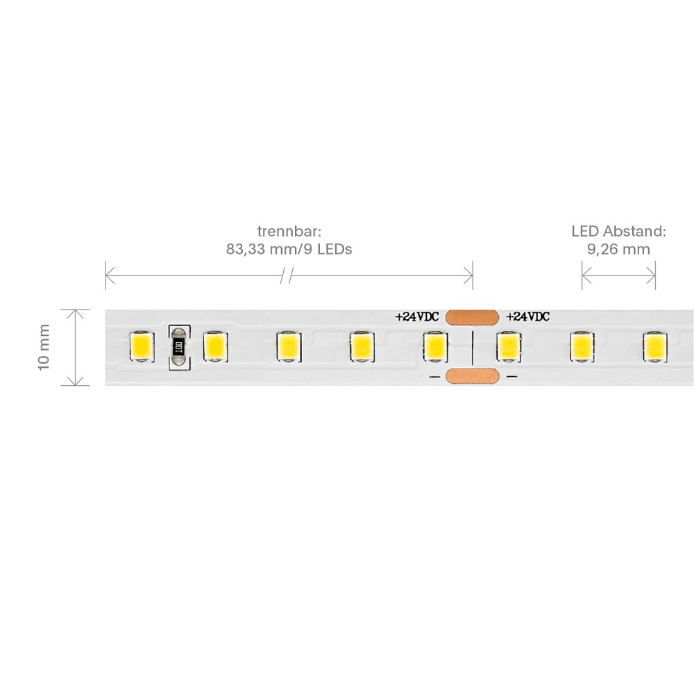 The LED Strip HE PRO is compact and easy to handle, with dimensions of 500 x 1 x 0.15 cm, it fits into many different application areas. The LED spacing is 0.93 cm and the strip can be cut every 8.33 cm to adjust it to the desired length. Installation is simple and uncomplicated.