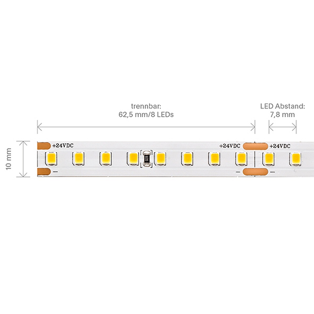 With a light output of 180lm/W and a luminous flux of 8655lm, the LED Strip NATURE offers excellent brightness. With 128 LEDs per meter, uniform illumination is guaranteed, creating a pleasant atmosphere.