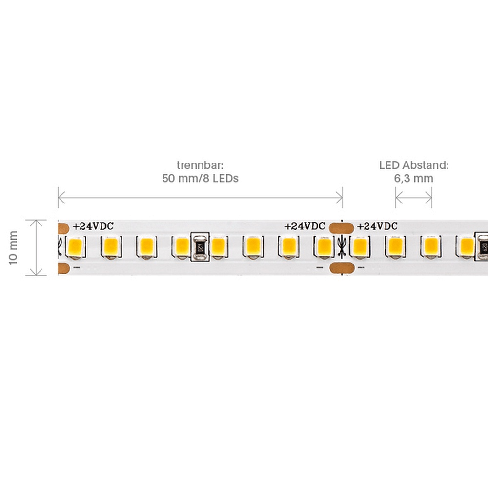 The LED Strip NATURE operates at a voltage of 24V and offers high heat resistance with a maximum operating temperature of 85°C. With an IP protection rating of IP20, the strip is protected against dust. The size of the strip is 500 x 1 cm and the LED spacing is 0.63 cm.