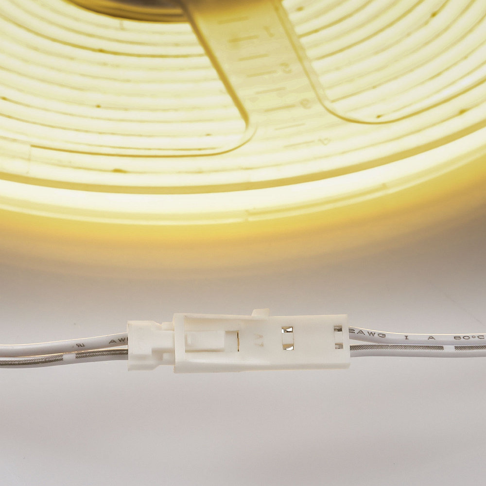 The LED flex strip features a beam angle of 120 degrees, which provides wide light distribution. Dimming is done via PWM (pulse-width modulation), allowing stepless adjustment of light intensity. The product is equipped with a clamp contact for power connection. Please note that connection sets and end pieces are not included and must be purchased separately.