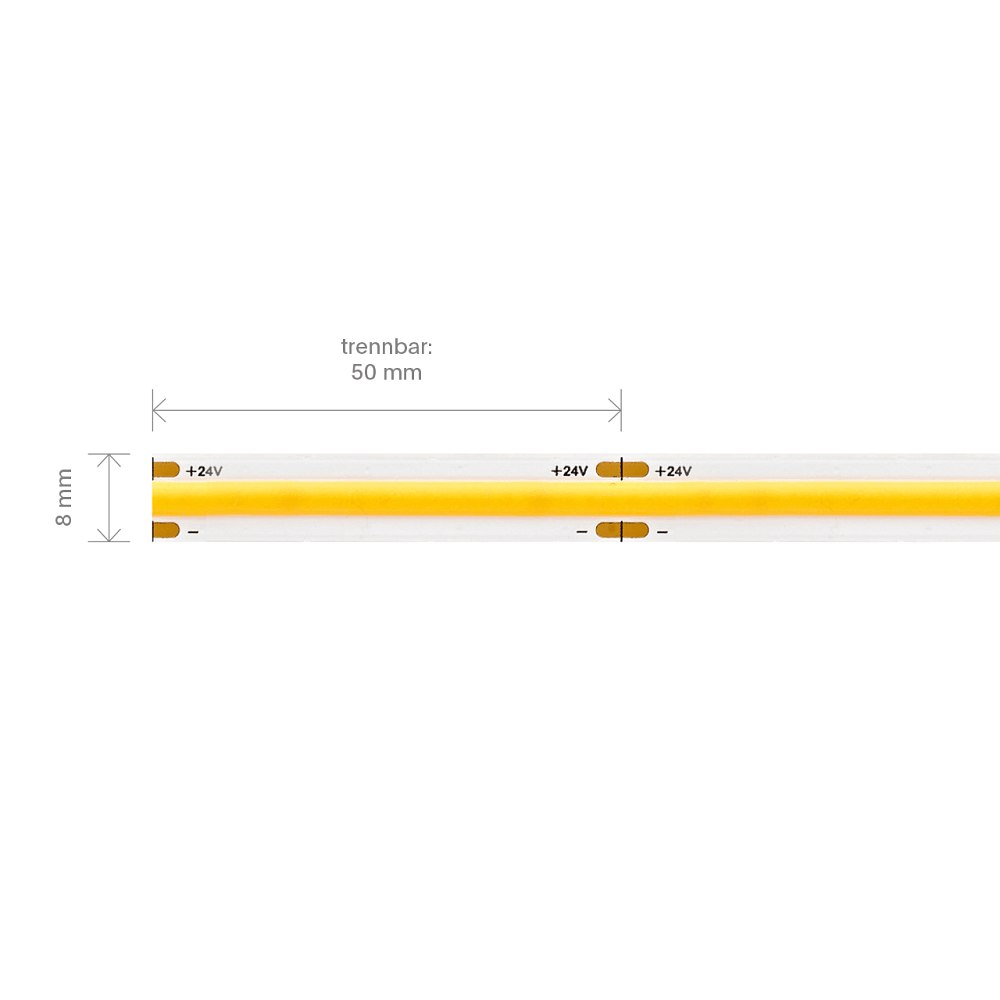 The LED strips can be easily cut every 5 cm, allowing you to customize them according to your individual needs. With a beam angle of 180° and an operating voltage of 24V, they are versatile and can be easily integrated into various room concepts.