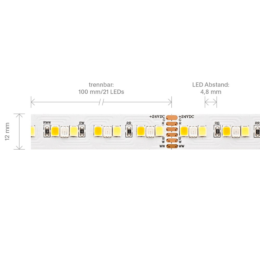 LED Strip RGB/TW, 20W/m, RGB/2300+6500K, 5m, 210 LED/m, IP20, 24V, 1662lm, Ra80