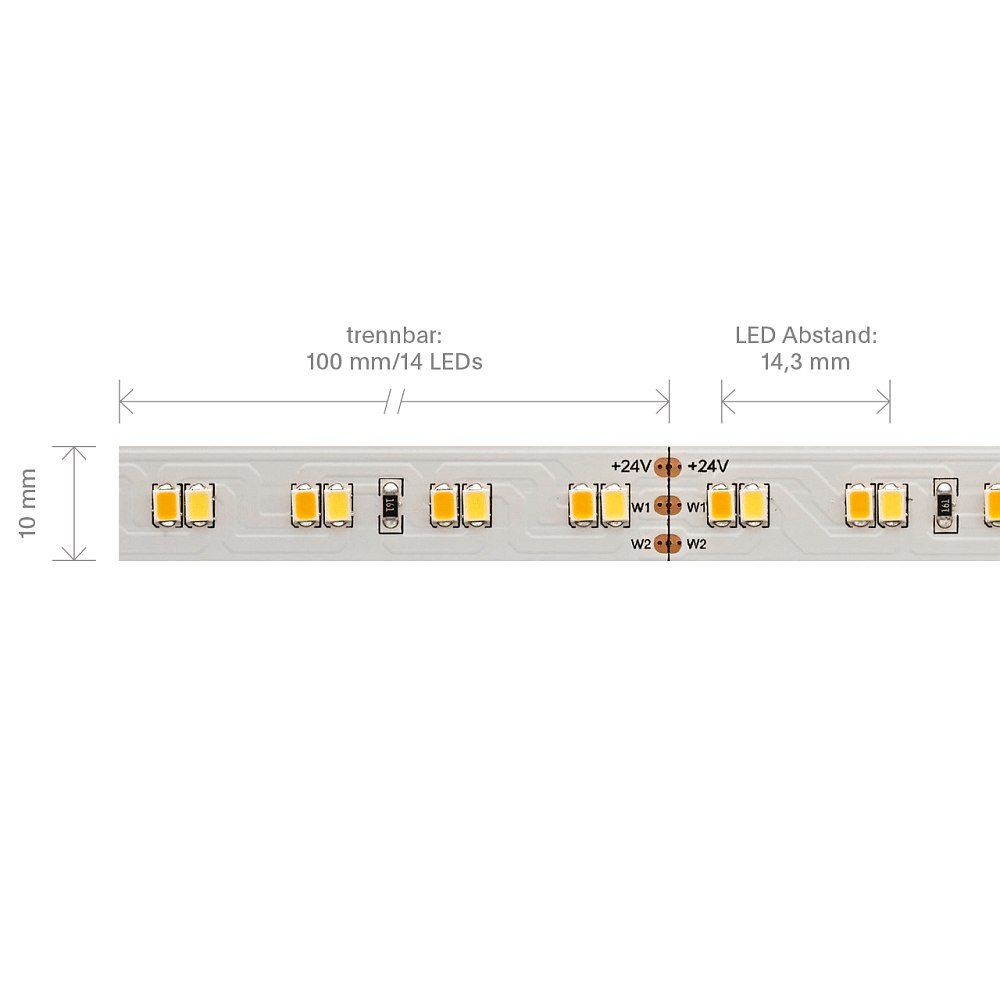 Energy-saving 14W/m TW LED strip 6500-2700K 5m 140LED/m IP20 24V 1574lm