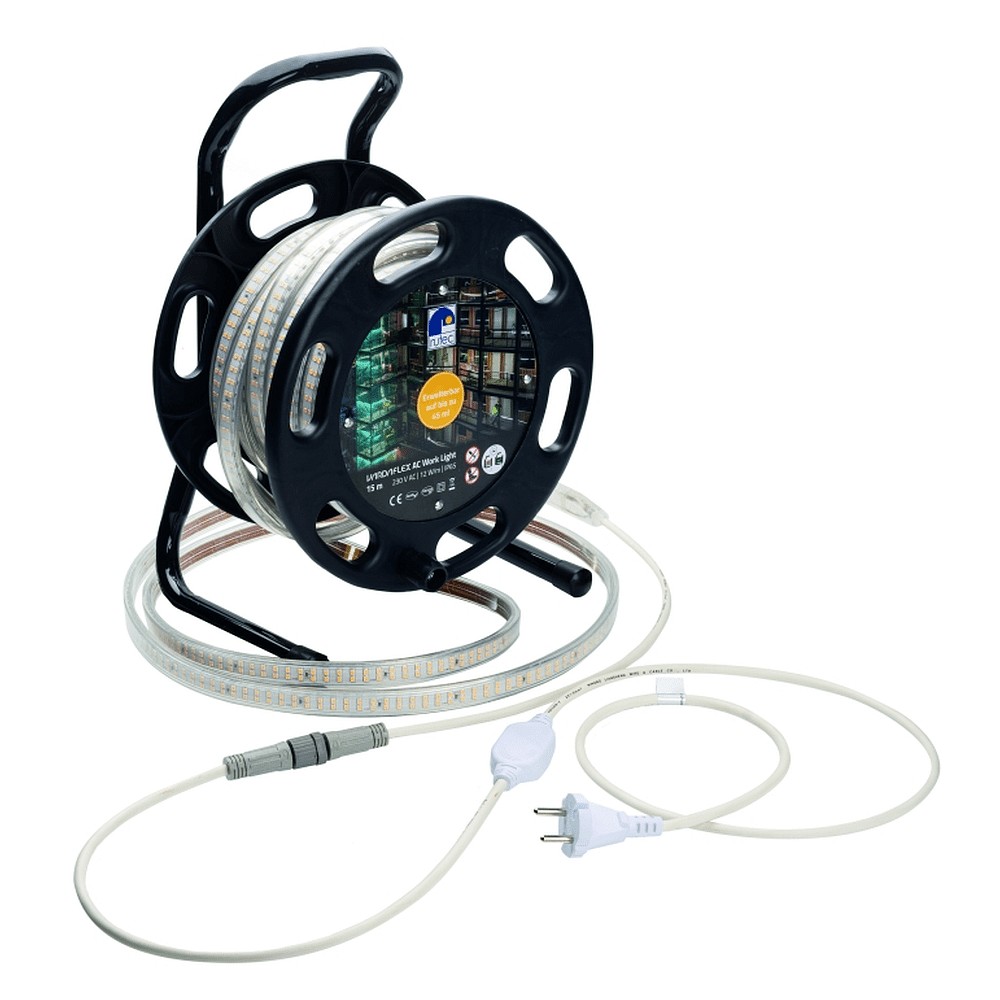 LED Strip VARDAFLEX AC WORK LIGHT PLUS / 15M DRUM 930 with feed-in option, with plug, with handle white