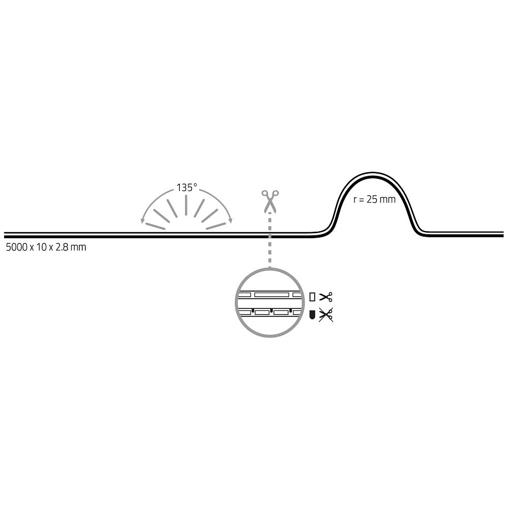 The LED strip VARDAflex COB FREE-CUT PLUS from Rutec is an energy-efficient lighting element that can be used in both residential and commercial areas. With a power consumption of only 10W/m and a light output of 88lm/W, this LED strip provides bright and uniform lighting.