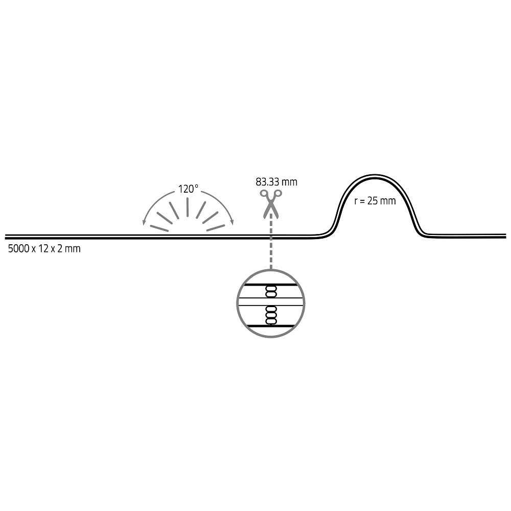 The Flexible LED Strip VARDAFLEX COB is known for its high energy efficiency and has a lifespan of up to 50000 hours. Thanks to LED technology, the strip consumes little energy and is environmentally friendly.